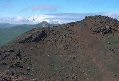 Crater in summit dome (foreground) and Makushin caldera rim (midground).