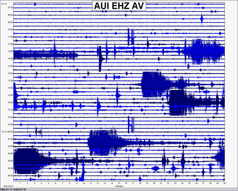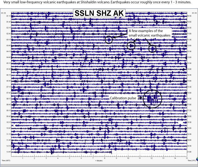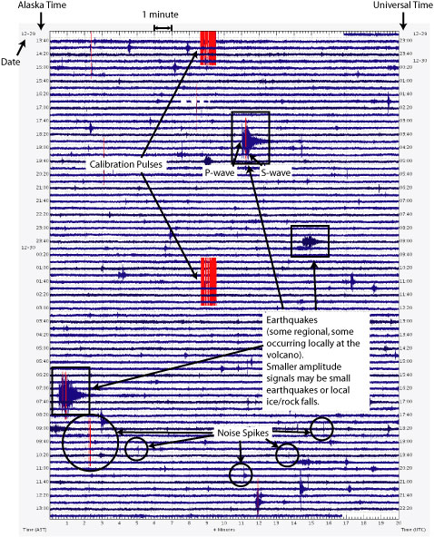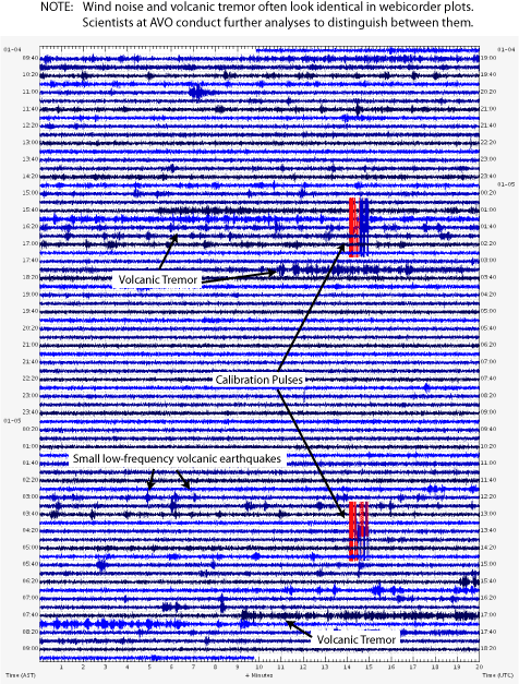 common at Alaska's volcanoes. Even a bear lumbering by will produce a signal. Electrical noise may also appear on the